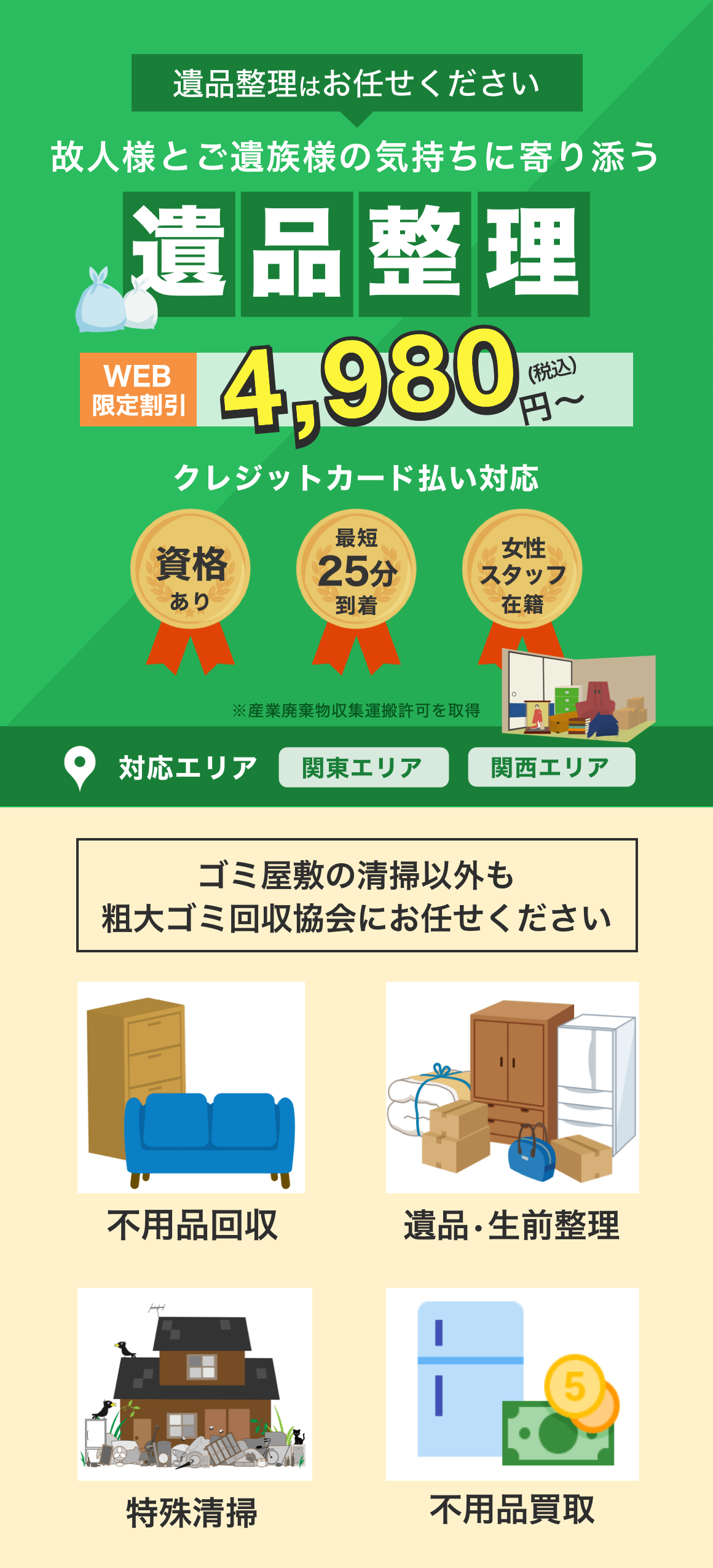 \ 面倒なお片付けは、プロに頼んでスッキリ解決 /